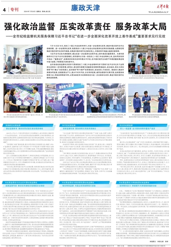 全市各级纪检监察机关把学习贯彻党的二十届三中全会精神与学习贯彻习近平总书记关于全面深化改革的一系列新思想、新观点、新论断和视察天津重要讲话精神贯通起来、结合起来,转化为深刻领悟“两个确立”决定性意义、坚决做到“两个维护”的思想自觉、政治自觉、行动自觉。围绕深入推进京津冀协同发展、发展新质生产力、高水平对外开放、文化传承发展、城市治理现代化等方面,找准服务保障着力点,积极发挥职能作用,以更加奋发有为的精神状态为进一步全面深化改革、推进中国式现代化提供坚强保障。