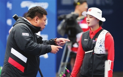 中国女队的教练是来自韩国的权容学,他曾是射箭运动员,退役后转型担任教练,在巴黎奥运周期接手中国射箭女队。韩国是射箭强国,权容学的到来,为中国队带来了很多不同的训练方法和理念,包括高台射箭、对抗射箭等,为队员们在平时训练中增加困难,以提升她们应对不同比赛环境的能力。权容学中文流利,擅长沟通,在心理方面给予队员们很多疏导。世界杯夺冠前,他曾鼓励队员们,每一次和韩国队交手都是学习提高的过程,总有一天会抓住机会战胜对手。