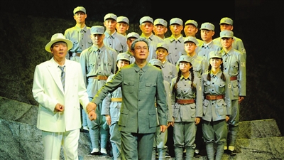 带着红色基因的延续与深厚情感的联结,演职员们把这个红色故事讲得引人入胜。剧中既有震撼人心的激情澎湃,也有会心一笑的诙谐活泼,将经典歌曲诞生过程娓娓道来,也令人看到中国共产党人为中国人民谋幸福、为中华民族谋复兴的初心和使命。舞台中央的舞美装置好似一张张乐谱,也像一面面旗帜,映衬着剧中人谱写人生的乐曲、高扬信仰的旗帜。观众吴琼说:“这是一台鲜活的舞台党课,深邃的历史视角、生动的艺术表现化作真挚的情感传递,让人更加坚定心中信仰和对祖国的爱恋。”