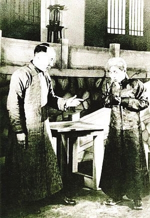图3 张彭春(左)指导曹禺(右)演《狂才》
