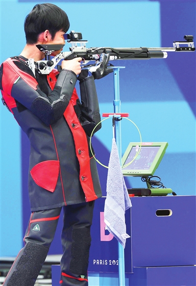 盛李豪以631.7环排名资格赛头名晋级,决赛前10枪中,盛李豪以105.8环稳居首位。进入淘汰轮次后,在对手紧追的情况下,盛李豪继续稳定发挥,以252.2环打破该项目奥运会纪录夺冠,收获个人在巴黎奥运会的第2金,这也是中国体育代表团的第5金。东京奥运会上,获得银牌的他,是射击历史上最年轻的奥运奖牌获得者。如今,他已经成为奥运双冠王。盛李豪依然淡定,只浅浅露出一丝笑容。他直言:“采访比比赛紧张多了。”被称为“干饭哥”的他,最想吃家里的红烧肉。