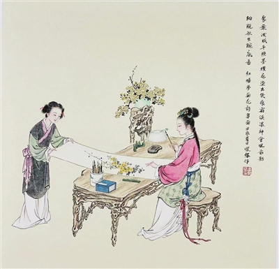 天津市红楼梦研究会与天津戏剧博物馆文庙博物馆管理办公室联合主办的“艺苑寻珍——天津《红楼梦》文化艺术展”,目前正在天津鼓楼博物馆展出。其中主办方特邀著名中国古典人物画家、《红楼梦学刊》美术编辑谭凤嬛及其所绘《红楼梦》题材作品参展,她笔下的大观园风情,以其构思精巧、画风婉丽赢得观众青睐。