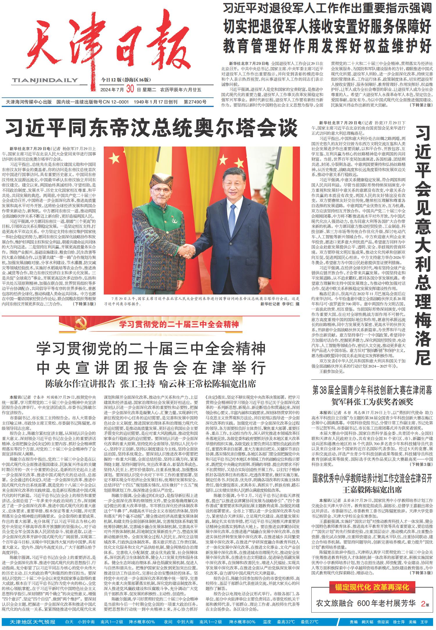 学习贯彻党的二十届三中全会精神 中央宣讲团报告会在津举行