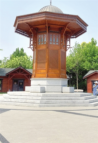 南翠屏公园也有儿童游乐场。公园西北角处不仅有滑梯、沙坑,还有一些儿童游艺项目等设施。最近,公园还新添卡通主题亲子游览车,带着小朋友逛公园,他们玩得开心,还不累,再也不会对家长撅嘴了。另外,天津友好城市萨拉热窝回赠我市的饮水亭也在公园里。记者看到,饮水亭置于圆形广场中央,高7.5米,亭下树枝形铺装象征津萨友谊生根发芽。两条流线形“河流”特色带状铺装,寓意海河和米里雅茨河齐头并进,相互交融,友谊源远流长,共同发展和谐共荣。接下来,公园管理方将通过文化交流、餐饮娱乐、手工艺品等多种形式,打造一处新景点。