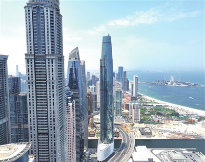 由中铁十八局承建的全球最高酒店类建筑——阿联酋迪拜蓝天酒店将于近期竣工交付。该酒店位于阿联酋迪拜玛瑞纳码头黄金地段,占地面积3662平方米,建筑面积约10.2万平方米,建筑檐高373.5米,拥有1000多间客房以及位于81层的玻璃观景台和带无边泳池的标志性屋顶天空露台等设施。 王洪伟