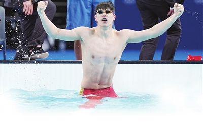 北京时间昨天凌晨,中国游泳队在沉寂了几日后终于在奥运会上“开张”,19岁的潘展乐在男子100米自由泳决赛中,以46秒40打破由自己保持的世界纪录,夺得冠军,为中国泳军一扫连日阴霾。这是中国游泳运动员首次登上该项目奥运最高领奖台,也是中国游泳队在本届奥运会上获得的首枚金牌。赛后,潘展乐用“一雪前耻”形容这场比赛:“看不起我们的,今天把他们都拿下了。憋着一口气,所有人的希望,在我下水前一刻,我感受到了。”