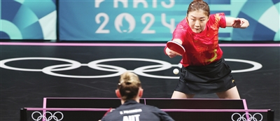 本报讯(记者 苏娅辉)巴黎奥运会乒乓球昨天展开单打1/4决赛争夺,率先出战的女单卫冕冠军陈梦4:0轻取奥地利的波尔卡诺娃,其中更是在第3局打了对手一个11:0。孙颖莎以4:0战胜中国台北选手郑怡静,挺进女单4强,其中第3局打出了19:17的高局分。男单1/4决赛中,樊振东对阵日本选手张本智和,在开局0:2落后的不利局面下,樊振东顽强地将比分扳平,随后张本智和再赢一局以3:2领先,在没有退路的情况下,樊振东稳定情绪,最终连胜2局,以4:3完成大逆转,晋级4强。