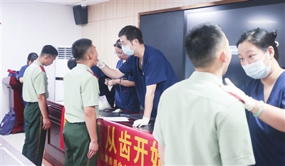 为弘扬爱国拥军良好风尚,在“八一”建军节到来之际,红桥区人武部、区退役军人事务局联合红桥区口腔医院走进某武警部队开展“医心为民 从‘齿’开始”义诊活动。