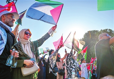 8月3日,民众在土耳其伊斯坦布尔参加集会声援巴勒斯坦。 新华社发