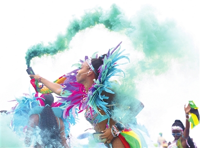 8月3日,盛装的狂欢者参加在加拿大多伦多举行的加勒比狂欢节大游行。