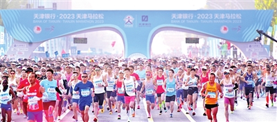 ① 2023天津马拉松鸣枪起跑。 本报记者 孙震摄