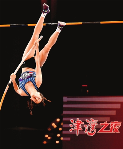 ⑥ 2024国际田径街头挑战赛(女子撑杆跳高)在津湾广场举行。 本报记者 孙震 摄
