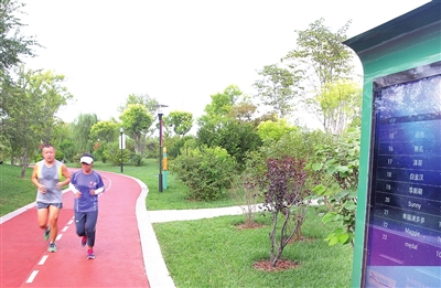 ⑦ 全新改造的河东区富民体育公园增加了许多“互联网+”的新型体育模式。