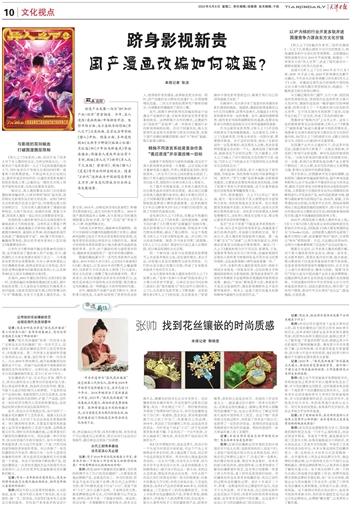 另外,在制作真人漫改影视作品时,转换不同语言系统是一项复杂任务,这包括将文字和漫画画面转化为影视画面,需考虑诸多细节,特效技术和摄影手法能帮助呈现漫画风格和视觉效果。她说:“‘粉丝’群体是多元的,尊重原作不是完全复制原作,满足影视剧特性也不是非要背离原作。根本上,是基于原作的基本构架和精神内涵制作出优质的作品。”