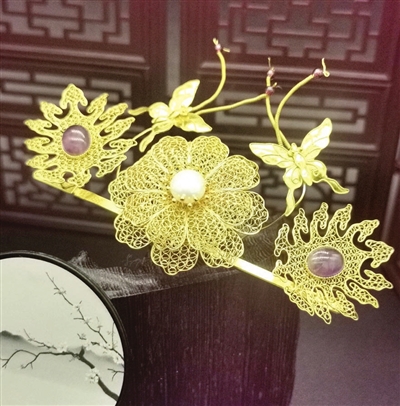 记者:您是如何成为非遗“张氏花丝镶嵌”第三代传承人的?在传承的基础上,您对这项非遗技艺又做了哪些创新?