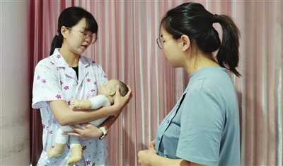 产妇在市妇儿中心接受母乳喂养指导。 摄影 杨赜骁