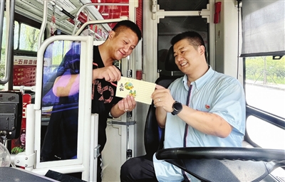在新立新市镇公交站,收到李双喜发出的第一张明信片后,乘客张先生非常感动。张先生说:“没想到天津公交的司机这么有心,用这种方式提示大家注重节气健康养生,也让我带着小惊喜去上班。”