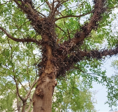 天津市城市园林绿化服务中心高级工程师陈晓霞说,这是皂荚树,树干上的刺可能会对居民尤其是儿童造成安全隐患。根据天津市居住区绿地设计标准,居民区内应选择无毒、无刺的植物,但该标准为推荐标准,不具强制性。