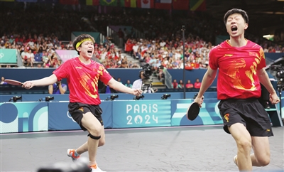 本报讯(记者 苏娅辉)3场3:2,中国队顶住了瑞典队的冲击,以3:0战胜对手,赢得巴黎奥运会乒乓球男团冠军,实现奥运会5连冠。这是“四朝元老”马龙的第6枚奥运金牌,成为中国夏奥史上获得金牌最多的选手。