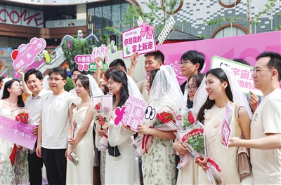 本报讯(记者 宋德松 摄影 吴迪)昨日,和平区民政局联合和平区婚姻家庭服务协会、和平区社区服务志愿者协会等单位,在和平区印象城胜利广场举办“七夕在和平 浪漫打卡行”主题活动,并现场为群众办理结婚登记服务。