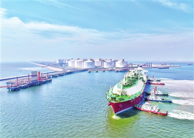 来自卡塔尔的液化天然气运输船正在靠泊中国石化天津LNG接收站。 照片由受访者提供