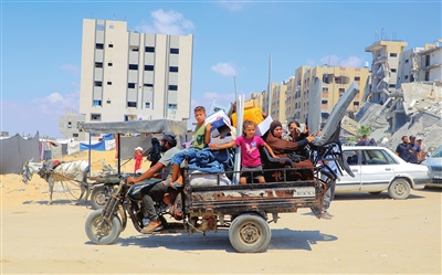 8月11日,在加沙地带南部城市汗尤尼斯西北部地区,当地民众在以色列发出疏散警告后撤离。 新华社发
