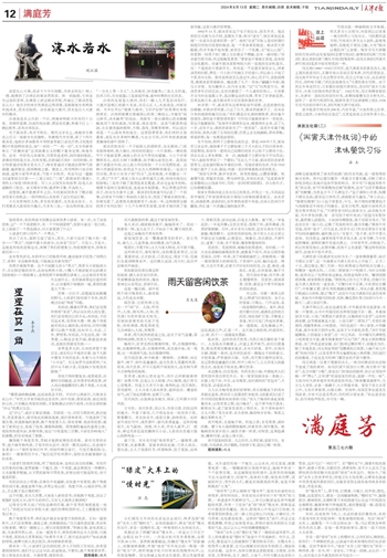 天津开埠以后,商业迅速发展,中外联系和交流紧密,市面一片繁荣,从书中所描写的各种饭馆就可见一斑。本地饭馆分大馆、小馆,“清真馆子请君尝,应属鸿宾与会芳”,这里的鸿宾楼、会芳楼就算是大馆。小馆又称“二荤馆子”,专营红烧猪肉、鸡腿等熟食,口味肥浓。当时还流行一种小食堂,中西餐具备,其中有的只招待女性,近似于今天的私房菜,“宫灯华丽繸飘扬,小饮端宜小食堂”,亦一时之风尚。书中描写天津特色小吃则更为丰富,像专制素食的“石头门坎”、荣业大街的穆家熬鱼、北门外的孟家豆腐、东门脸郑记糖炒栗子,皆驰名当时。除了本地美食,冯文洵还写到“花雕酒佐江南菜,小碗干丝几片肴”的扬州馆子,以及受青年男女偏爱的起士林西餐、当时流行的冰激凌,于此足见当时津门餐饮业的开放与繁荣。