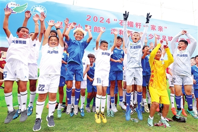本报讯(记者 王睿 申炜)昨天上午,在天津奥林匹克中心体育场足球外场,来自新疆和田地区策勒县、于田县、民丰县的56名“足球小巴郎”(小巴郎,新疆维吾尔族语言中对小男孩的称呼)与天津市青少年的足球友谊赛开赛,标志着2024“石榴籽一家亲”暨“足球小巴郎”新疆和田青少年赴津交流学习活动正式启动。