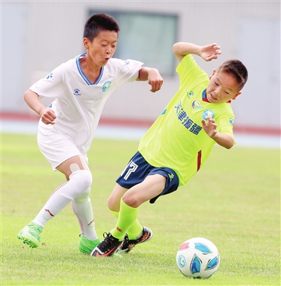 昨天上午,在天津奥林匹克中心体育场足球外场,来自新疆和田地区的“足球小巴郎”与天津市青少年的足球友谊赛开赛。