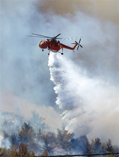8月12日,消防直升机在希腊首都雅典附近的迪奥内进行灭火作业。 新华社发