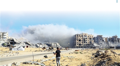 8月16日在加沙地带南部城市汗尤尼斯西北部的一座城镇拍摄的建筑物废墟。 新华社发
