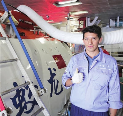8月19日,哥伦比亚科学家海梅·安德烈斯与“蛟龙号”合影。