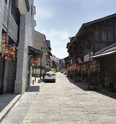 我还是喜欢夜晚的梅江河。两岸的花灯亮起来了,刹那间,蜿蜒了一河的五彩斑斓,好似灯火长龙静卧在西街的怀抱里。徜徉于河边,感受着徐徐微风拂面,西街的热闹方刚刚上演。梅江河无言,但潺潺流水流过的是古今变迁,流过的是沧海桑田。