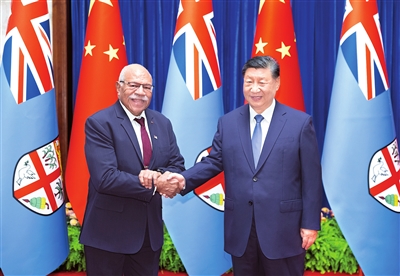 新华社北京8月20日电(记者 温馨)8月20日下午,国家主席习近平在北京人民大会堂会见来华正式访问的斐济总理兰布卡。