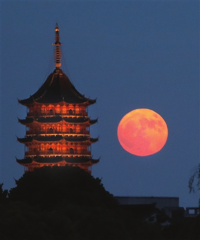 8月19日在江苏省苏州市拍摄的“超级月亮”。 新华社发