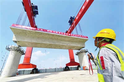 昨天,津潍高铁天津段首榀箱梁架设成功。 本报记者 张磊 摄