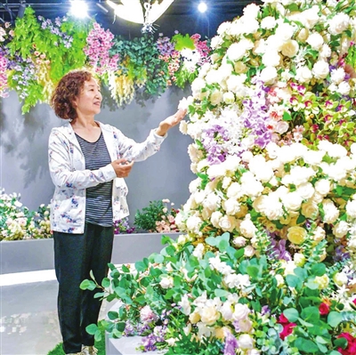 8月13日,记者走进武清区曹子里镇绢花产业文化园的四季展厅,目光所及之处花团锦簇,颜色各异的玫瑰花、蝴蝶兰和杜鹃花争奇斗艳。但无一例外,它们都是人造的。
