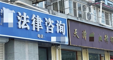记者走访中还发现一件怪事,不少法律咨询公司百米范围内都有一家律师事务所存在,有的二者办公地点在同一栋大楼内,有的对外悬挂的牌匾紧挨着。