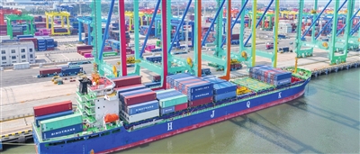 昨天下午,外运集运华北到东南亚的精品航线在天津港正式开通。 通讯员 李四航 本报记者 吴迪 摄