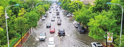 昨日,我市部分区域出现短时强降雨,雨后一些低洼区域和路段出现不同程度积水。本报记者 吴迪 摄于郁江道