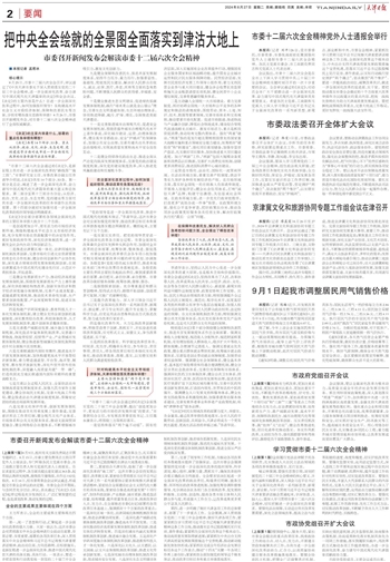 会议指出,市委十二届六次全会是在全市上下深入学习贯彻党的二十届三中全会精神之际召开的,是对学习贯彻落实工作的再动员再部署、再深化再落实。全会审议通过的《决定》对进一步全面深化改革、奋力谱写中国式现代化天津篇章作出部署,既符合中央精神,又契合天津实际,具有很强的政治性、指导性和可操作性。我们要把思想和行动统一到市委全会精神上来,持续学懂弄通做实党的二十届三中全会精神,充分发挥政协专门协商机构作用,推动各项改革任务落到实处、取得实效。