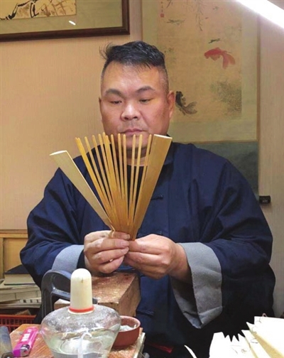 徐广华说,近年来人们对文玩热度非常高,喜欢折扇的年轻人也越来越多,也有人来找他帮着修复收藏的残损折扇,所以他一直在研究古老的制扇工艺、工序和制扇传统工具。