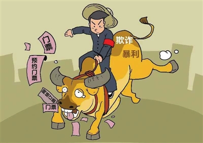 近期,不少地方的警方对文旅“黄牛”出手了。“黄牛”以收取中间费或提高票价的方式帮助某些游客进入文旅场所,是对文旅资源的二次转卖,必须予以打击。王宇 画