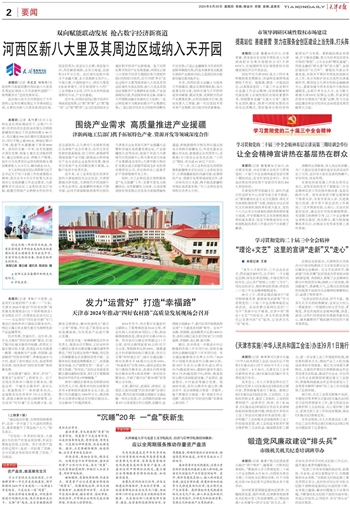 未来,河西区将主动融入与服务天开园建设,健全完善管理机制,加大政策支持力度,加快实现与天开园形成双向赋能、联动发展,发挥数字经济产业聚集优势,以科技创新为引领,推动发展人工智能、新一代信息技术等未来产业集群,抢占数字经济新赛道。