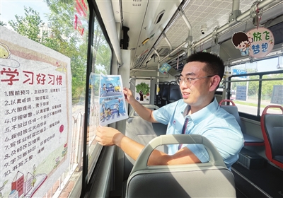 开学在即,我市部分公交线路为学生们带来开学第一堂“安全课”,还有部分公交线路在车厢内布置“新学期许愿树”“加油卡”等。