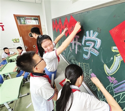 图为开学前夕,和平区新星小学的同学们精心布置教室,迎接新学期。