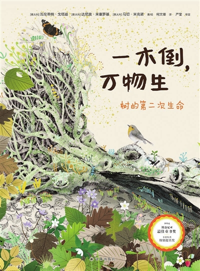 森林中,一次风暴、一道闪电,或是病虫害,都有可能让一棵树倒下。倒掉的树木静静地伏卧在地上,但生命的陨落并非终点,它将在很长一段时间内,为林中的动物、植物、真菌等提供理想的生境,以另一种形式,成为森林不可或缺的一部分。这就是2024博洛尼亚最佳童书非虚构类大奖作品《一木倒,万物生:树的第二次生命》为我们讲述的。