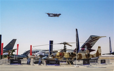 图为9月3日,在埃及阿拉曼开幕的首届埃及航展上,中国空军运-20进行飞行展示。