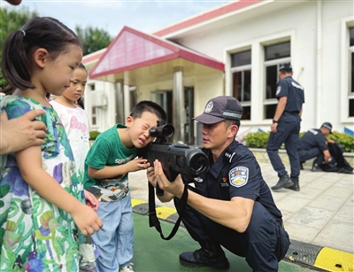 ②开学第一天,南开区第十五幼儿园邀请市公安局特警总队直属五支队的特警叔叔,为小朋友们带来一场“警”彩的开学第一课。 本报记者 刘欣 通讯员 张蕊 摄