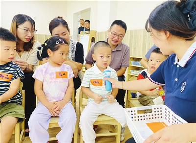 图一:河西区第二十六幼儿园,家长们与孩子们一同走进幼儿园,在家长的陪伴下,小朋友们沉浸式体验亲子手工、亲子游戏等活动,逐渐消除了陌生感,更快地适应幼儿园环境。
